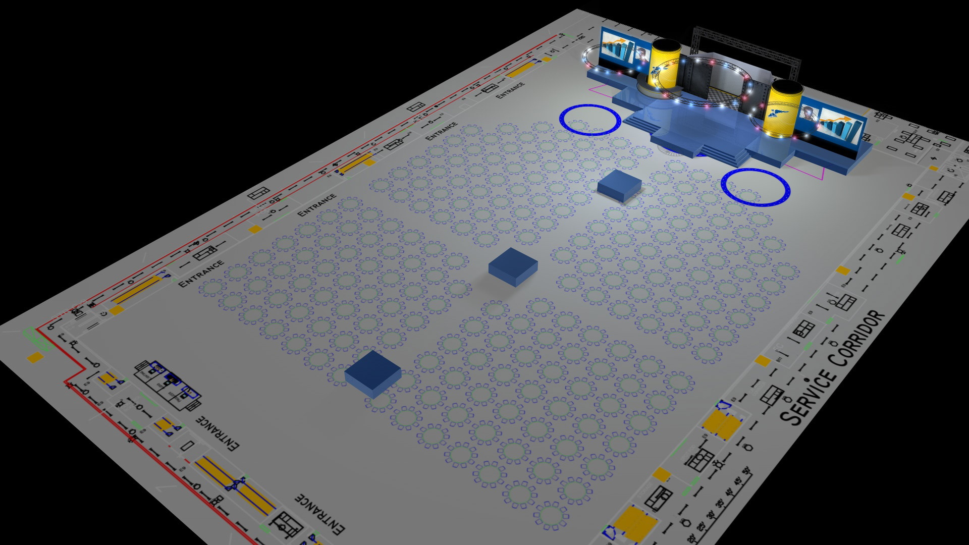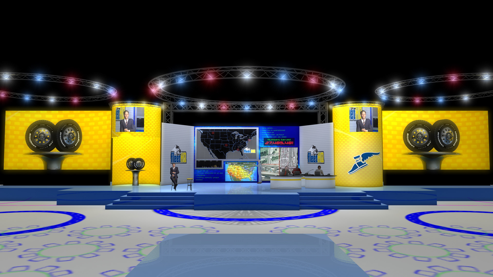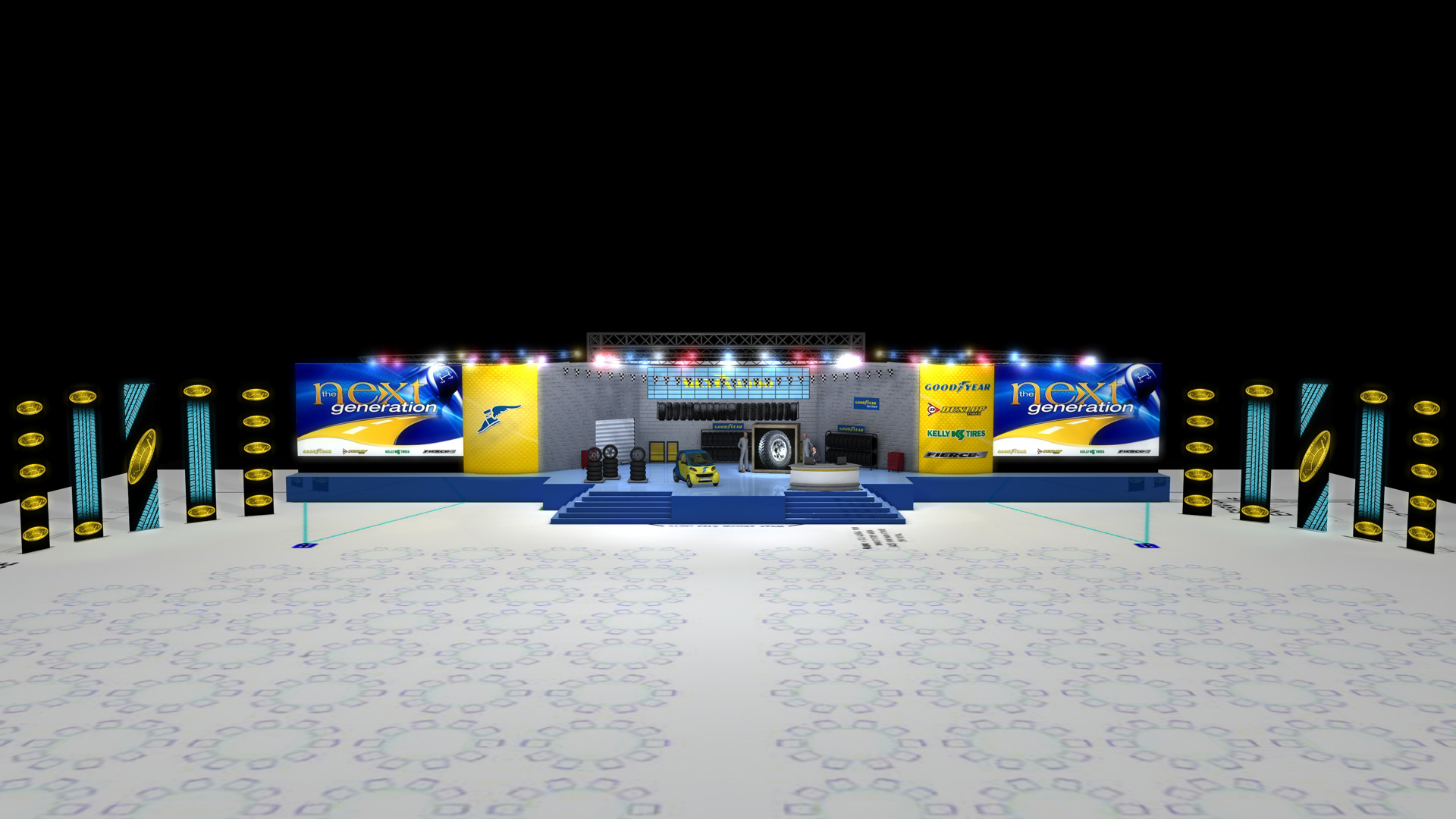 Tasked with creating a 3D set design for Goodyear's annual conference, based on the floor plan provided.